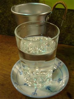 受け皿付の厚手コップと酒が入ったチロリが与えられ自分で注ぐタイプだ。